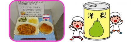 今日の給食では、山形県産の「ラ・フランス」という品種の洋なしを缶詰にしたものを使用しています。