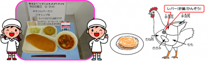 今日の「チキンレバーカツ」の原材料は、鶏肉、鶏レバー、たまねぎ、パン粉、小麦粉、でん粉、砂糖、食塩、カレー粉です。鶏などのレバー(肝臓/かんぞう)には鉄やビタミンAが多く含まれています。