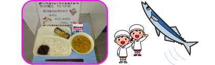 今日の給食では、骨付きのさんまに塩で下味をつけて焼き、だいこんおろし、みりん、薄口しょうゆ、ゆず果汁で作ったたれをかけています。