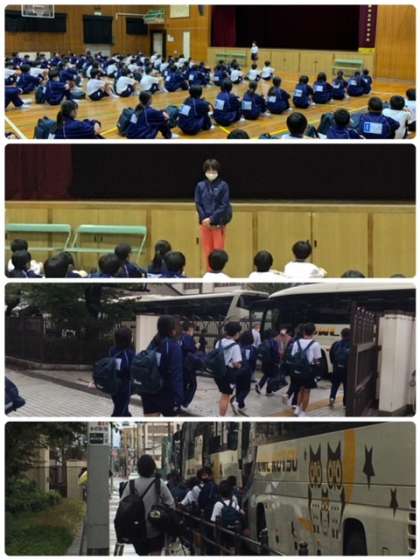 体育館で開舎式を終え、時間通り出発しました。