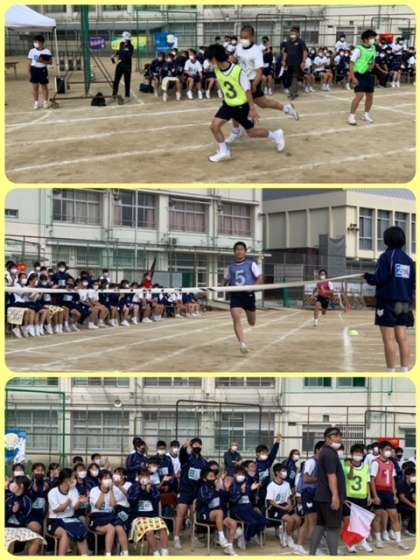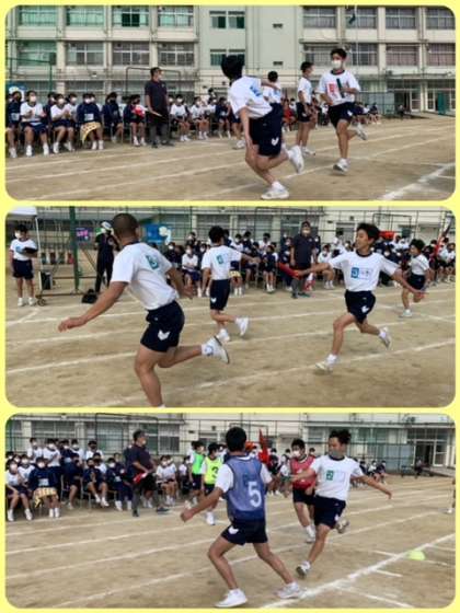 縦割リレー 体育の授業の50メートルの記録で選抜されたメンバーでクラス対抗の縦割です。