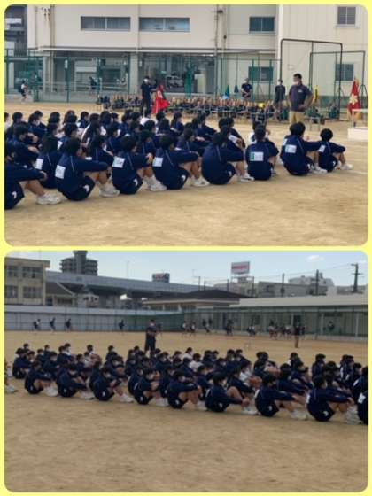 3年生は中学校生活最後の行事を終え、気持ちを切り替え進路に向かって行きます。学年主任の先生のお話の後、クラス写真を撮影しました。
