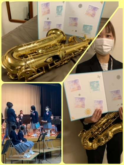 吹奏楽部 ステラミニコンサート 2 公開日 2021/11/06 更新日 2021/11/06 出来事 コンサート終了後に撮影タイムがありました。3年生から顧問の先生への色紙のメッセージに先生方も感謝していました。