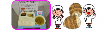 今日の給食では、汁物の具として使用しており、里芋を使用することによりとろみがつき、冬場でも冷めにくくなります。