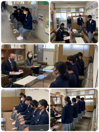 今週は3年生の進路に向けて、面接練習を各クラス順番に行っています。校長先生の質問に緊張しながら答えていました。