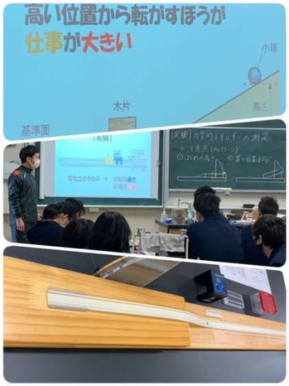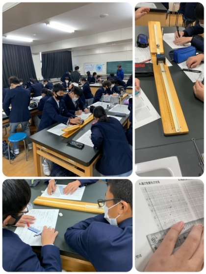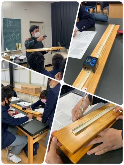 3年 理科 研究授業 公開日 2021/12/02 更新日 2021/12/02 出来事 ?位置エネルギーと運動エネルギーの関係を実験結果のグラフから考えます。実験結果について、班で積極的に意見交換することで、考察を深めることができました。