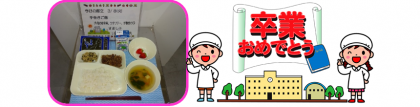 今日は、新たな進路へと羽ばたく3年生の卒業をお祝いする献立としました。3年生の皆さんは、公立高校の入試や卒業式など最後の大きな行事を過ごすと中学校での生活も終わることとなります。これからも楽しい人生を送ることができるように歩んでほしいと思います。