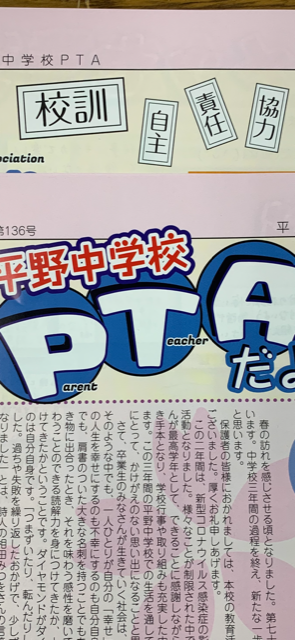 本日、PTAだよりを配布しました。卒業生からのメッセージや1、2年生の2学期の行事の様子が載っています。