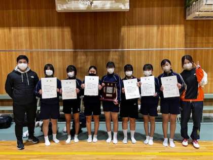20日(土)、新巽中学校で4ブロック団体戦がおこなわれ、女子チームが優勝しました。5試合全て3-0の完封勝ちで、堂々の優勝です。男子チームは予選落ちでしたが、強くなっていることを実感できました。次に期待です。