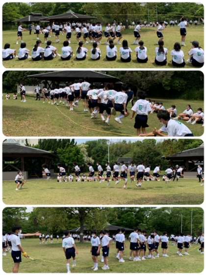 大縄大会が始まりました。どのクラスも練習の成果を発揮しようと団結しています。