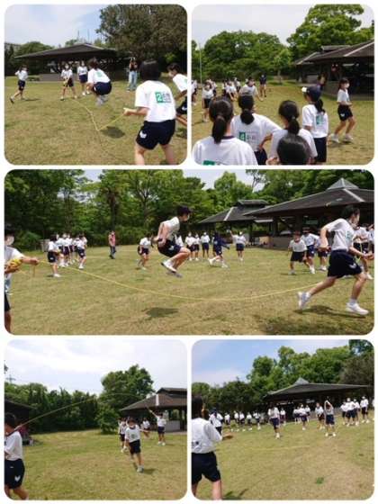 全員で跳んだ後は、八の字ジャンプで回数を競います。