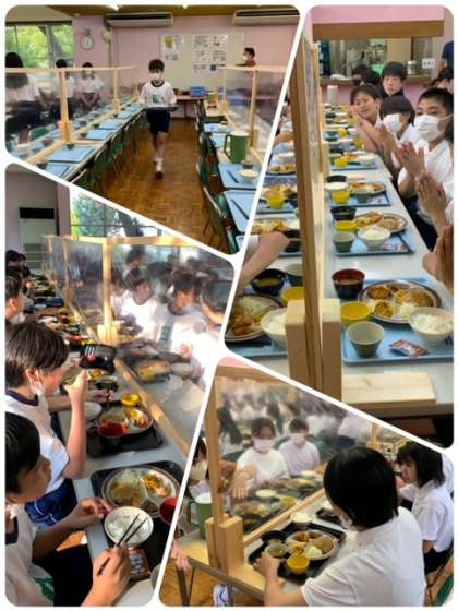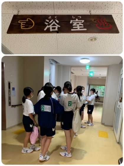 入浴と夕食を時間交代で済ませました。車酔いや、暑さでしんどくなった人も回復し、夕食をしっかりと食べていました。