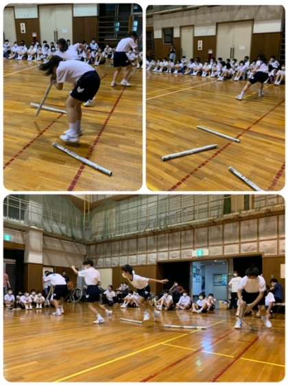 回る「ぐるぐるバット」 7回まわったあと、ゴールまで走ります。
