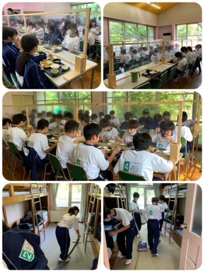 朝食と館内の掃除を交代でしました。この後は、野外炊飯です。