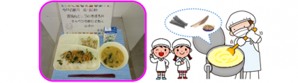 今日の給食では、「みそ汁」に昆布と削り節のだし汁を使っています。
