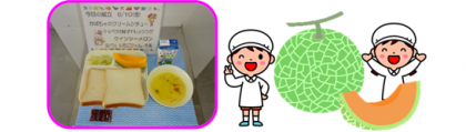 今日の給食では、熊本県産のクインシーメロンを使用しています。