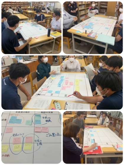 研究協議 公開日 2022/06/13 更新日 2022/06/13 出来事 授業参観後にグループに分かれ、授業の振り返りを行いました。今年度の研究テーマ、「自分で考え、伝える力を伸ばす」に基づいて、意見交換をしました。