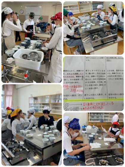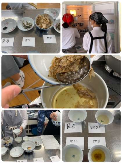 「うま味とは何か」について、4つの食材で出汁をとる実習や話し合いを通して考えました。