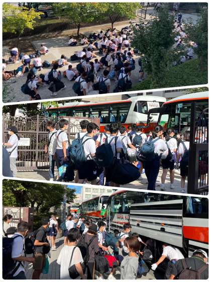 バスに乗車して出発しました。