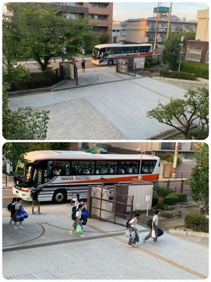 予定より早く帰校しました。この後は、体育館で帰校式を行います。