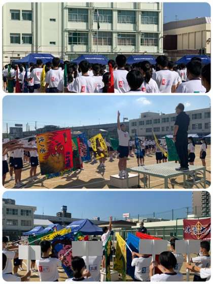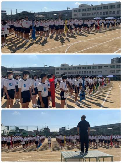 開会式、プログラム1番合同体操が終わりました。