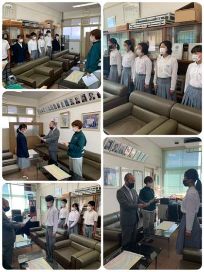 運動場の状態が悪かったため、お昼休みに校長室で認証式を行いました。