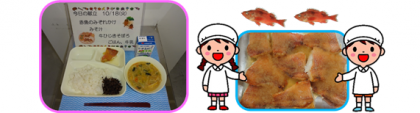 今日の給食では、塩焼きした赤魚に、だいこんおろし、みりん、しょうゆ、ゆず(果汁)を合わせて煮たたれをかけています。