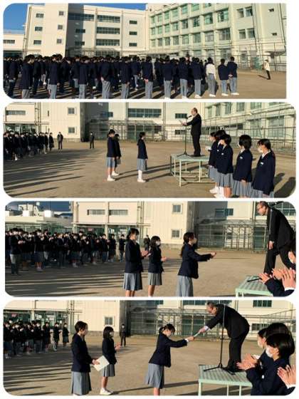 昨日行われた吹奏楽のアンサンブルコンクールの賞状伝達がありました。金賞、銀賞を受賞しました。