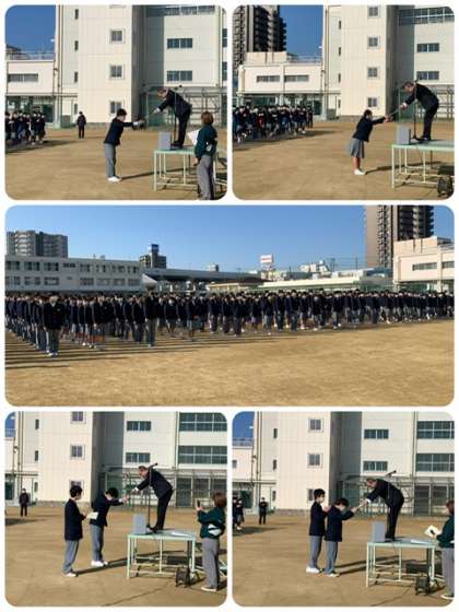 全校集会 公開日 2023/03/06 更新日 2023/03/06 出来事 近畿中学校美術展2名、大阪市中学校造形展入賞30名入賞の賞状伝達、平野区役所の読書習「ひらちゃんノート」3名の賞状伝達を行いました。