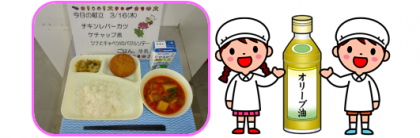 今日の給食では、「ツナとキャベツのバジルソテー」の炒め油として使用しています。