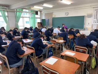 本日のようす 公開日 2023/04/12 更新日 2023/04/12 出来事 4月12日(水) ◎朝の登校の様子です。 元気よく挨拶してくれます。 ◎3年数学 単元小テストをしています。 ◎2年技術 タブレット端末の確認をしていました。