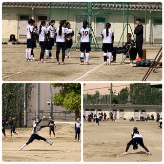 昨日延期となりましたソフトボール部の大阪市春季大会予選リーグ(4チームリーグ)が旭陽中学校で行われました。