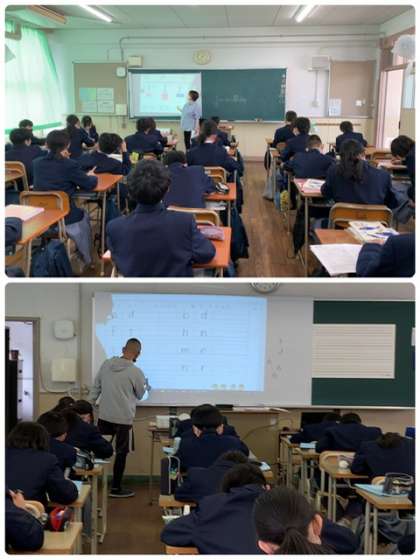 1年生の授業の様子です。 ・数学 正の数・負の数 ・英語 アルファベット小文字(ブロック体)