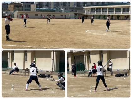 ソフトボール部の大阪市春季大会の2次リーグ(3チームリーグ)が新北野中学校で行われました。