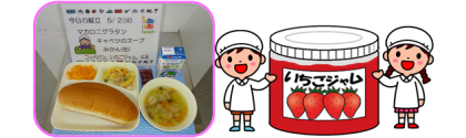 今日の給食では、袋入りのいちごジャムをパンに添えています。
