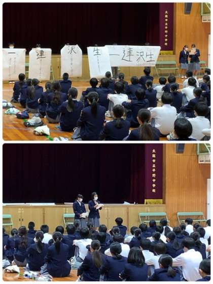 ◎6月に予定している校外学習(大阪市内フィールドワーク)のスローガンが実行委員より発表されました。