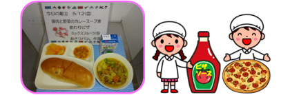 今日の給食では、トマトソースをベースにしてつくられた製品を使用して、「変わりピザ」のソースとして使用しています。