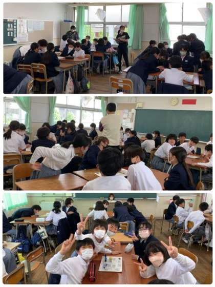 1年生特別活動 公開日 2023/05/12 更新日 2023/05/12 出来事 6時間目 1年生で教育相談が終了したところは集団づくりをしています。 サイコロを使い、すごろく方式に進み、出た目の箇所に書かれてある指示や質問を一緒にゲームしている人にすることでコミュニケーションをとるゲームです。 楽しく取り組んでいました。