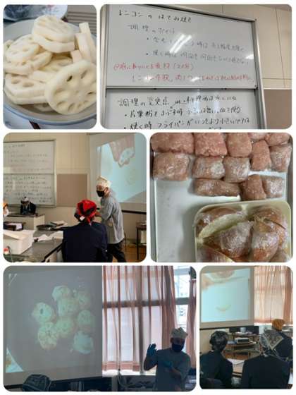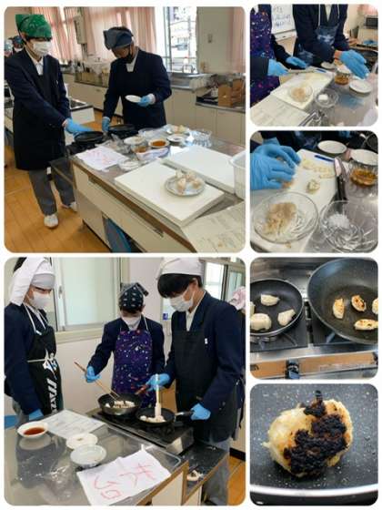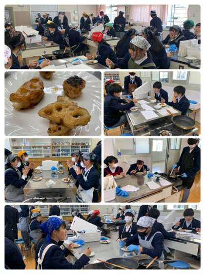 3年生家庭科 公開日 2023/05/15 更新日 2023/05/15 出来事 調理実習で蓮根のはさみ焼きを作りました。動画で調理手順を確認し、班で協力して調理しました。火加減が難しかったようですが,美味しくいただきました。