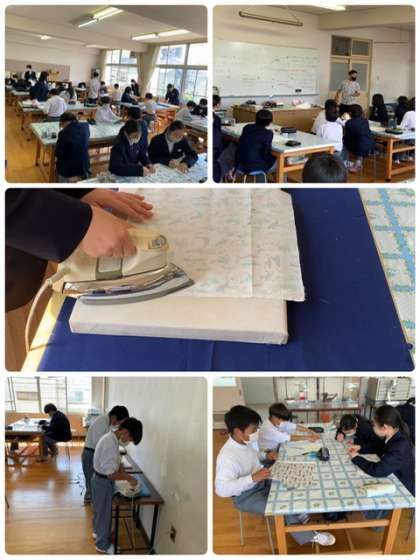 1年家庭科 公開日 2023/05/16 更新日 2023/05/16 出来事 5月16日(火) 1年生の家庭科で被服(裁縫)実習をしています。 ものづくり(裁縫)の楽しさを知る目的でランチョンマットを作ります。 今日は両端を折りアイロンを掛けていました。その後は半返し縫いをしていく予定です。