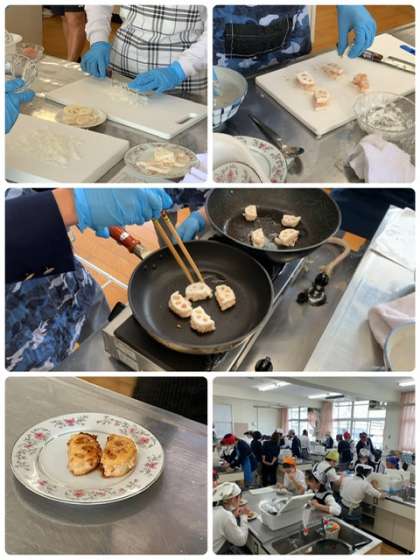 3年生調理実習 公開日 2023/05/18 更新日 2023/05/18 出来事 本日も3年生家庭科の調理実習が行われました。 レンコンのはさみ焼きを作っています。役割分担し、コミュニケーションをとりながら作業しています。 完成後は、美味しそうにいただいていました。