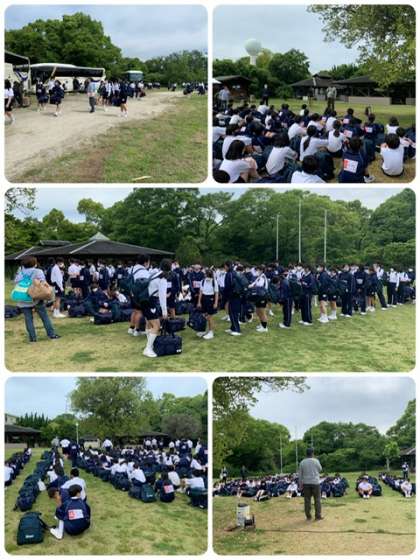 施設の説明や注意する動植物についてのお話を聞きました。今から最初の活動,大縄跳び大会です。