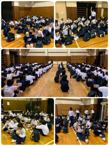 各係の仕事を確認し,部屋ごとに1日の振り返りを行いました。補食のメロンパンを食べ,このあと就寝準備です。