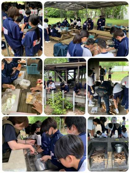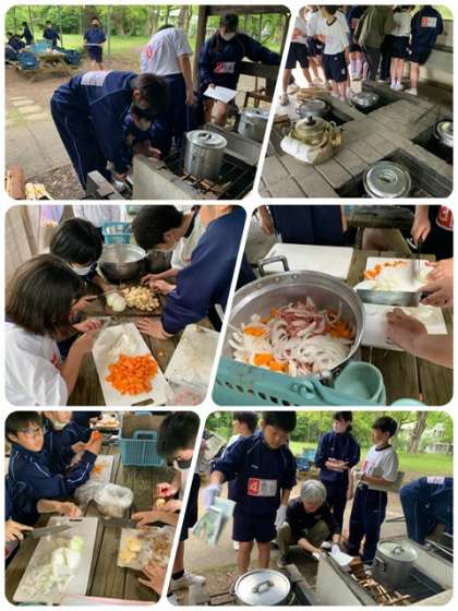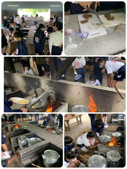 一泊移住16 公開日 2023/05/26 更新日 2023/05/26 出来事 班で協力してカレーライスを調理しています。手を切らないように慎重に具材を切りました。かまど係も火の調整に奮闘しています。