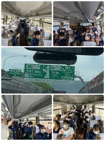 バス内では早くも歌などで盛り上がっています。