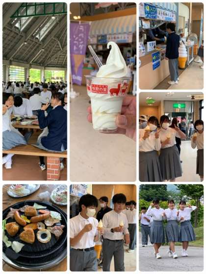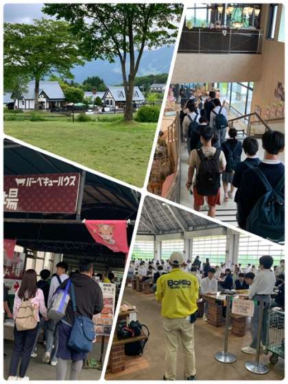 修学旅行2日目4 公開日 2023/06/01 更新日 2023/06/01 出来事 再びひるがの高原に戻り、牧歌の里で 昼食のバーベキューです。 昼食後はソフトクリーム券を受け取り各自でもらいに行きます。