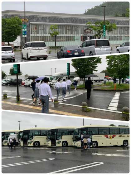 修学旅行3日目7 公開日 2023/06/02 更新日 2023/06/02 出来事 帰路 16:40に多賀SAを出発しました。 40分遅れていますので、交通状況が影響無ければ、到着17:30→18:10予定です。
