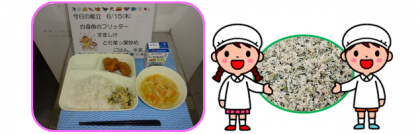 「とり菜っ葉炒め」は、大阪市の学校給食で提供している手作りのふりかけシリーズの一つです。これは、鶏のささみをフレーク状にして油漬けしたものと、乾燥の大根葉を水でもどしたものを油で炒め、料理酒としょうゆで味付けしたものです。ささみによる良質のたんぱく質と、大根葉によるカロテン、ビタミンC、カルシウム、鉄など、栄養豊富な一品となっています。