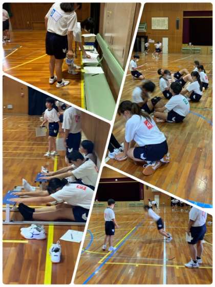 新体力テスト(全8種目)を実施できていない人が、未実施の種目だけをそれぞれ実施しています。