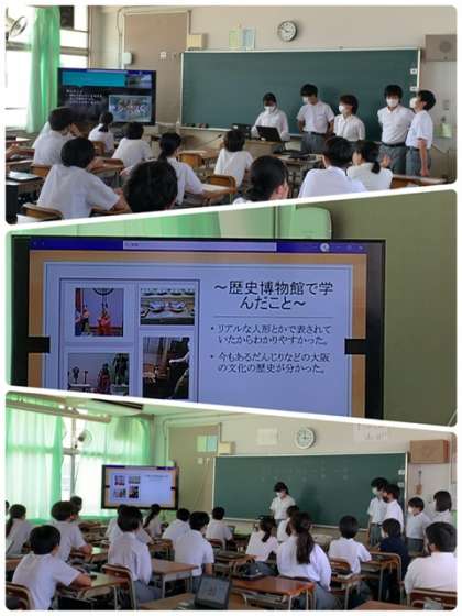 ●2年生・・大阪フィールドワークまとめの発表をプレゼンテーションしています。
